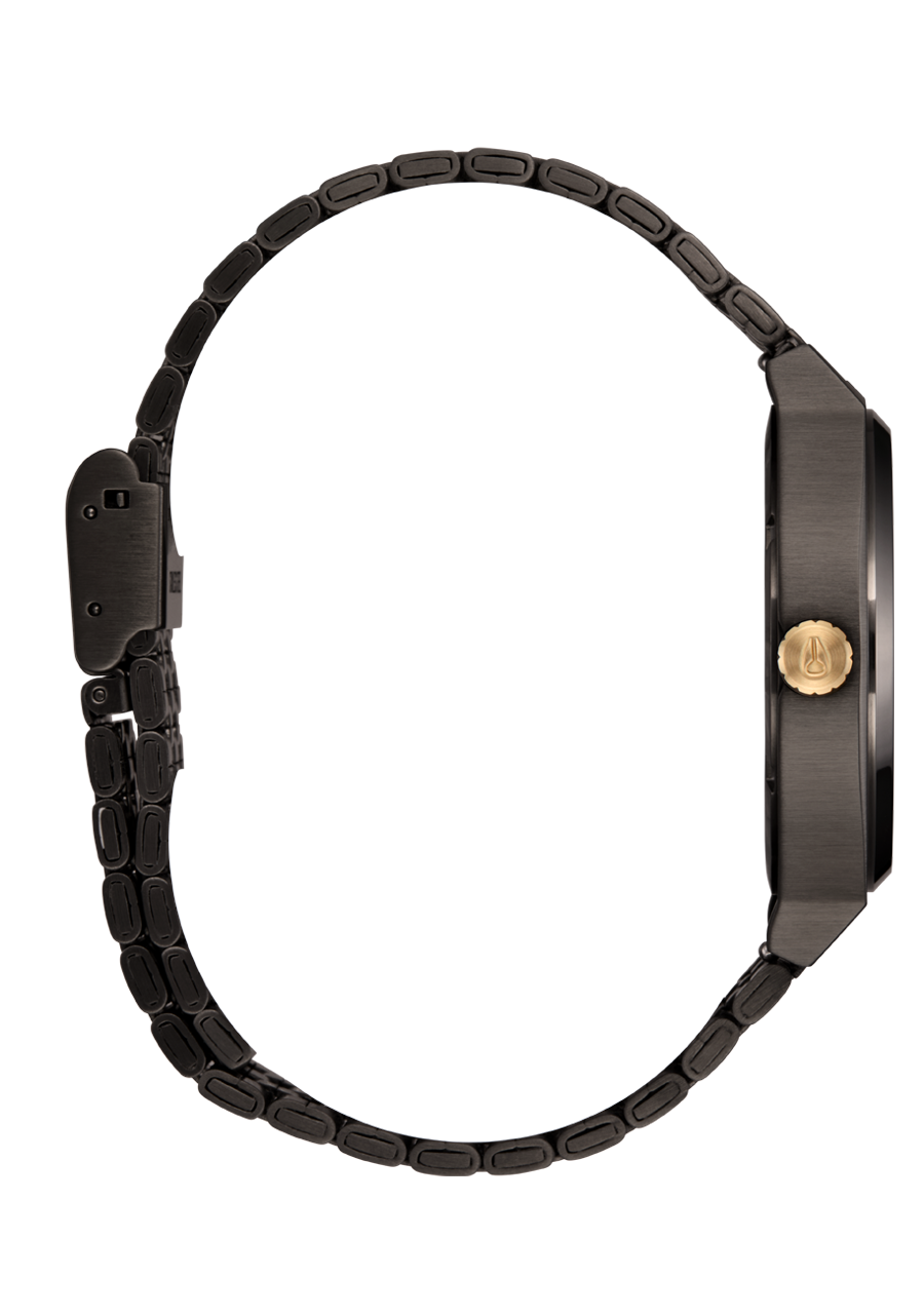 This collection elevates the traditional silver pairing by combining classic gold accents with a bold gunmetal case and stainless steel band. Then it cranks the dial all the way up with a deep and polarizing blackberry or lavender finish. It may be obvious already, but these watches are loud, respectfully.