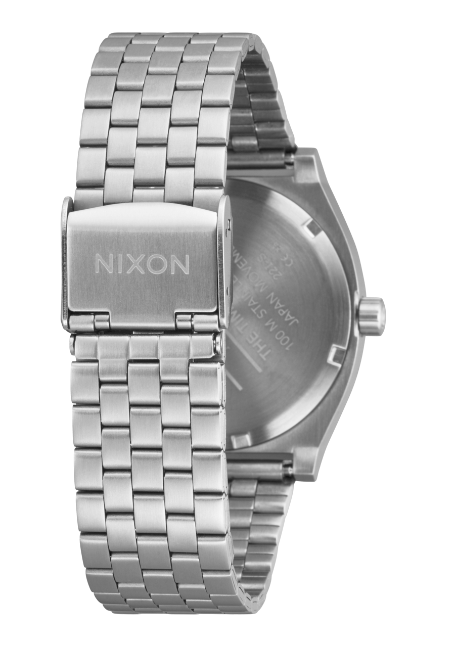 20-18mm tapered custom 5-link stainless steel bracelet and an adjustable stainless steel locking clasp.